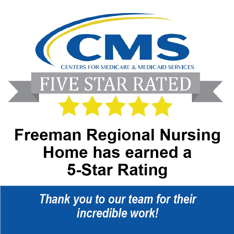 Freeman Regional Health Services (FRHS) is proud to announce that its nursing home has received a 5-star overall quality rating from the Centers for Medicare & Medicaid Services (CMS)—the highest rating possible.